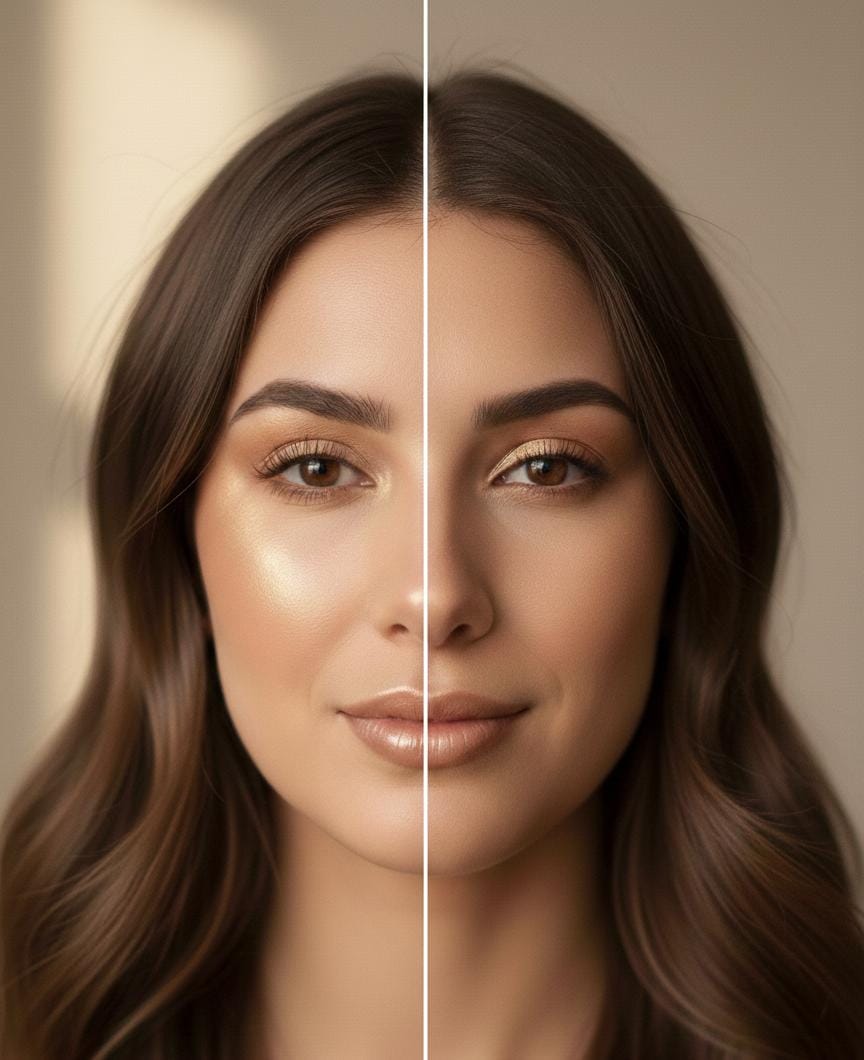 Si fonde perfettamente con il tono della pelle per un look luminoso o metallico.